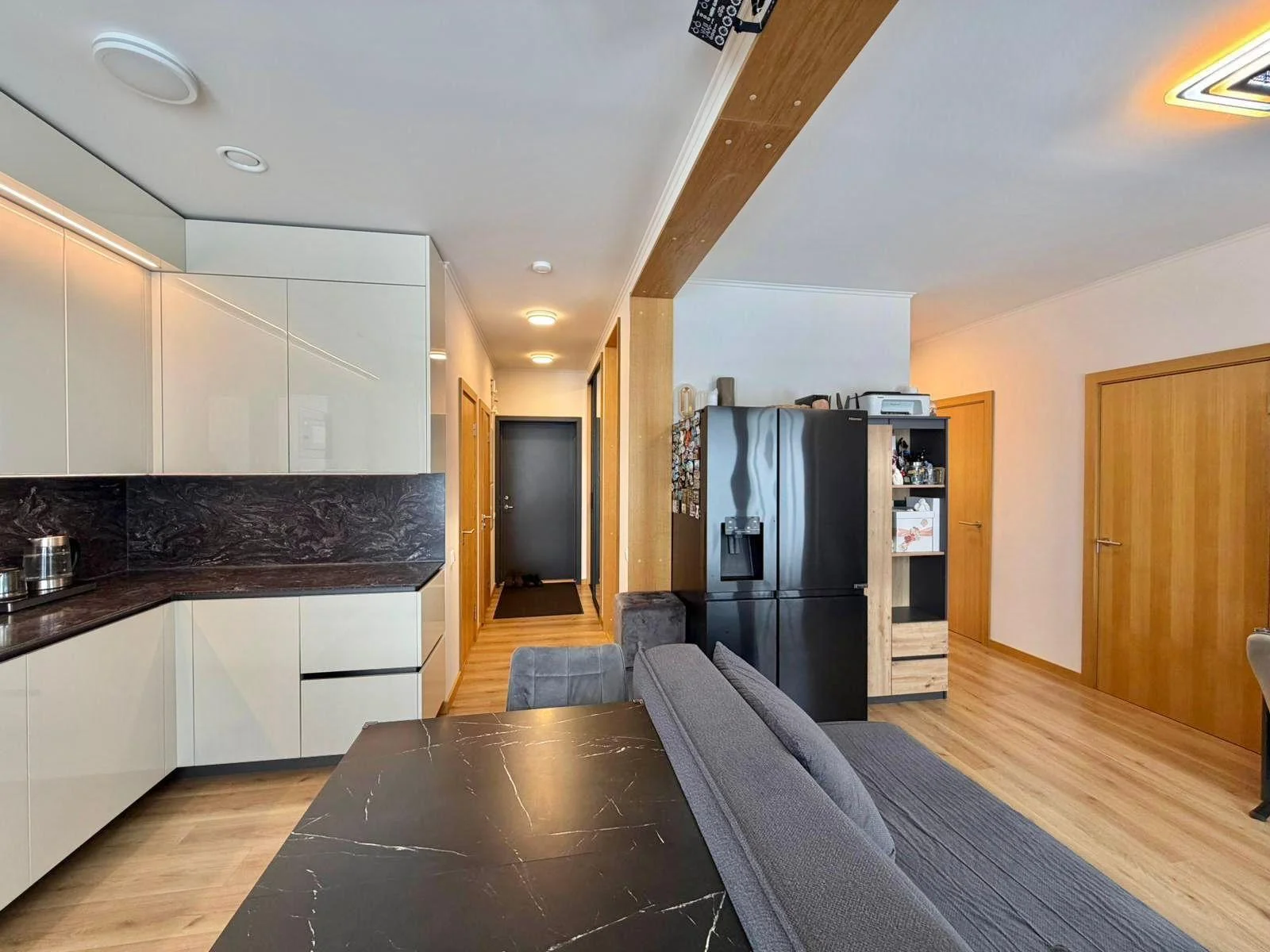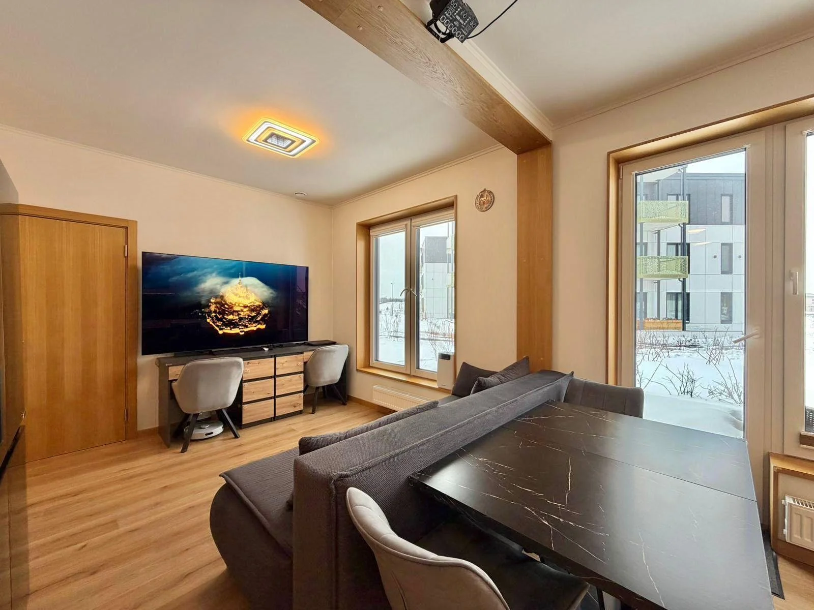 Pārdod dzīvokli Salienā – vietā, kur gribas palikt Ja meklē mājokli, kur apvienojas miers, kvalitāte un sakopta vide, šis dzīvoklis Salienā būs īstā izvēle. Dzīvoklis ar kopējo platību 76,7 m² (t.sk. 15,5 m² terase) piedāvā pārdomātu un ērtu plānojumu – plaša viesistaba ar virtuvi, divas izolētas guļamistabas, vannas istaba, atsevišķs WC un ērts koridors ar iebūvētiem skapjiem. Lielā terase kļūs par Tavu privāto atpūtas vietu. Dzīvoklis atrodas 2024. gadā ekspluatācijā nodotā ēkā un ir gaišs un mājīgs – lielie logi ielaiž daudz dabīgās gaismas un rada patīkamu plašuma sajūtu. Kvalitatīva apdare ar ozolkoka laminātu, pilnībā aprīkota virtuve, RIPO skapji un Electrolux tehnika (ar garantiju) ļauj ievākties bez papildu ieguldījumiem. A klases energoefektivitāte, rekuperācija un 3 pakešu logi nodrošina komfortu un zemas komunālās izmaksas. Apkuri iespējams regulēt individuāli un maksāt tikai par faktiski patērēto. Cenā iekļauta autostāvvieta. Pieejama arī slēdzama riteņu telpa. Dzīvoklis tiek pārdots mēbelēts (vai bez – pēc vienošanās) un ir gatavs ātrai nodošanai jaunajam īpašniekam. Saliena ir īpaša vieta – klusa, zaļa un sakopta vide ar parkiem, bērnu laukumiem un pastaigu vietām. Tajā pašā laikā viss nepieciešamais ir rokas stiepiena attālumā – skolas, bērnudārzi, sporta kompleksi, golfa laukums un iepirkšanās centrs. Līdz Rīgas centram – 20 minūtes, līdz Jūrmalai – 5 minūtes.