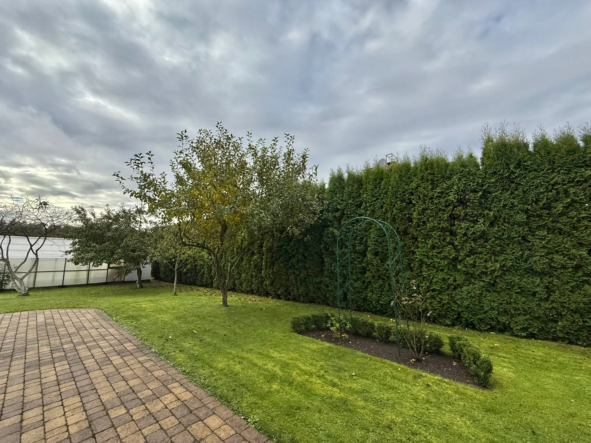 Ap māju ir plaša, labiekārtota teritorija ar bruģētiem celiņiem, dzīvžogu visapkārt un skaisti iekoptiem augiem, krūmiem un kokiem. Pagalmā atrodas siltumnīca ar dārzeņiem, augļu koki – ābeles, bumbieres, ķirši.