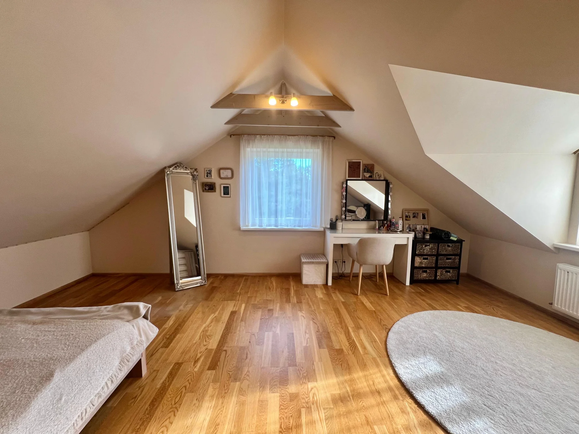 Otrajā stāvā - trīs guļamistabas, plašs master bedroom ar garderobes telpu un kopīga ģimenes vannasistaba. Telpu plānojums ir pārdomāts un funkcionāls, radot sajūtu, ka viss ir tieši tur, kur tam jābūt.