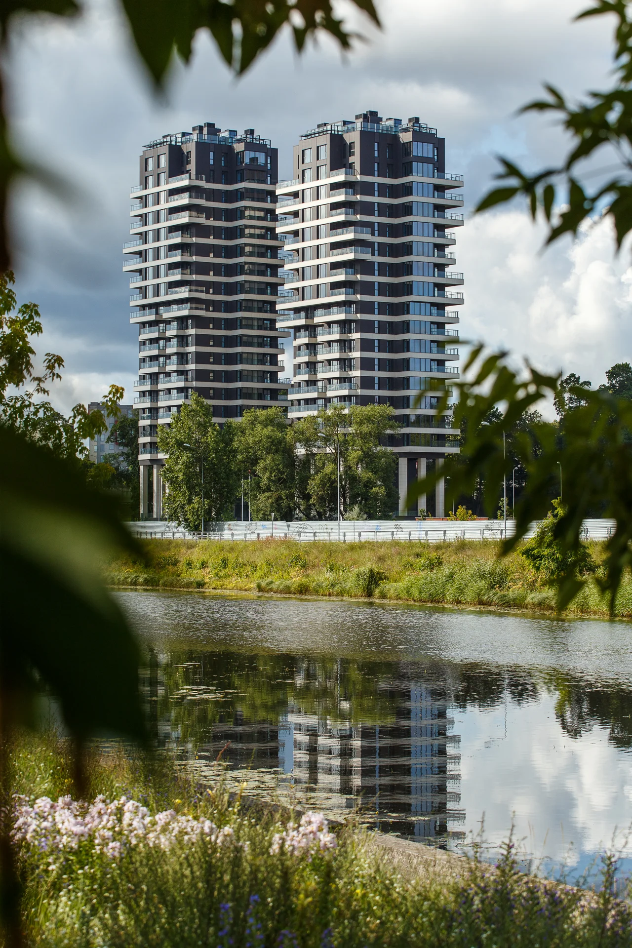 Filozofu rezidences atrodas labiekārtotā 4200 m2 lielā teritorijā. Projektā ir divas daudzīvokļu ēkas – 22 un 23 stāvi, kurās kopā ir 115 dzīvokļi. Abās ir apakšzemes stāvvietas.
