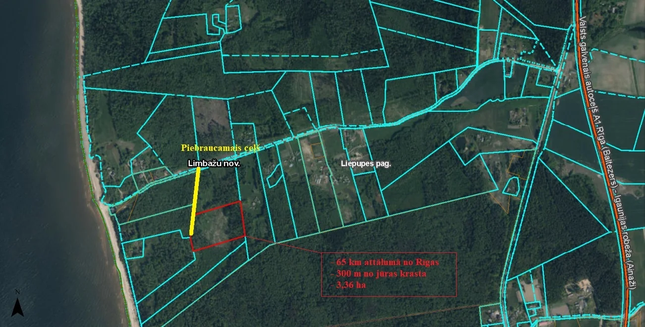 Zemes gabala kopējā platība ir 3,36  ha un tas atrodas otrajā līnijā no jūras.